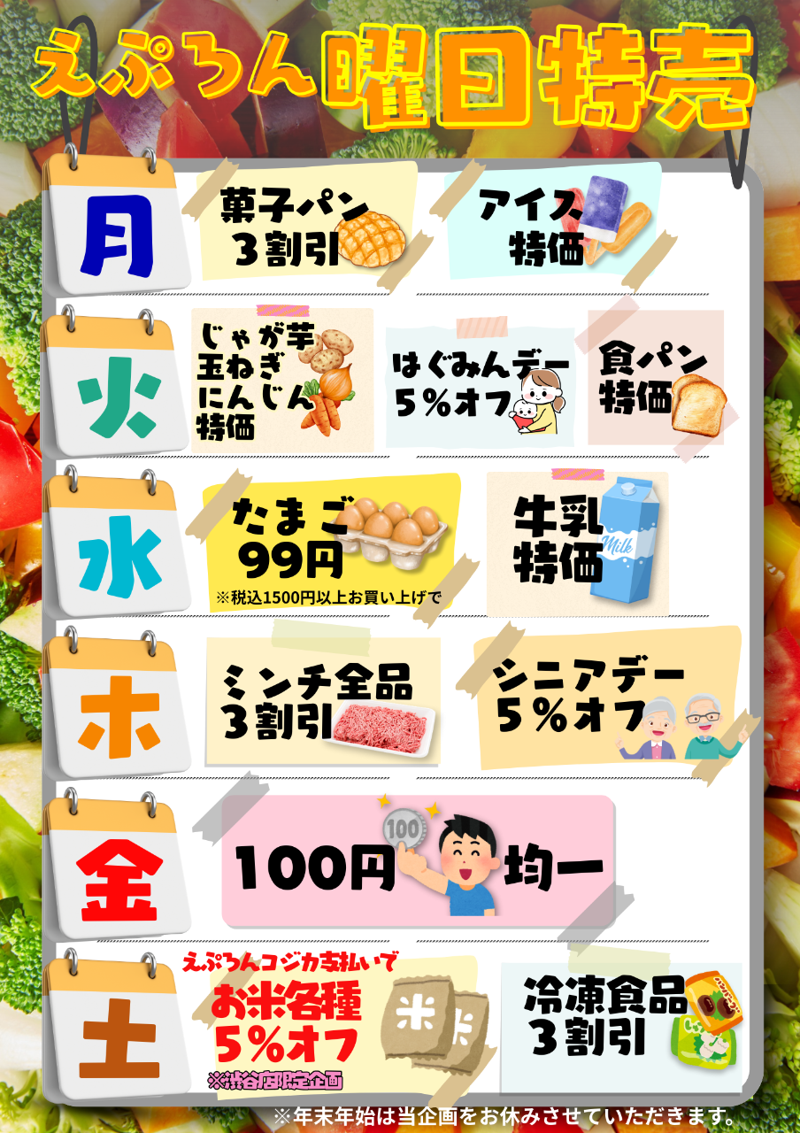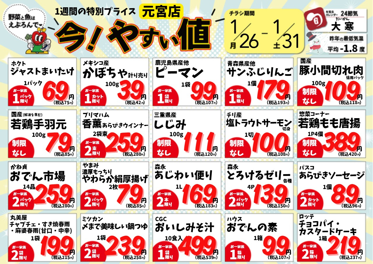 ※各店にて毎日、特売価格商品をご用意しておりますが、原則、チラシは発行しておりません。