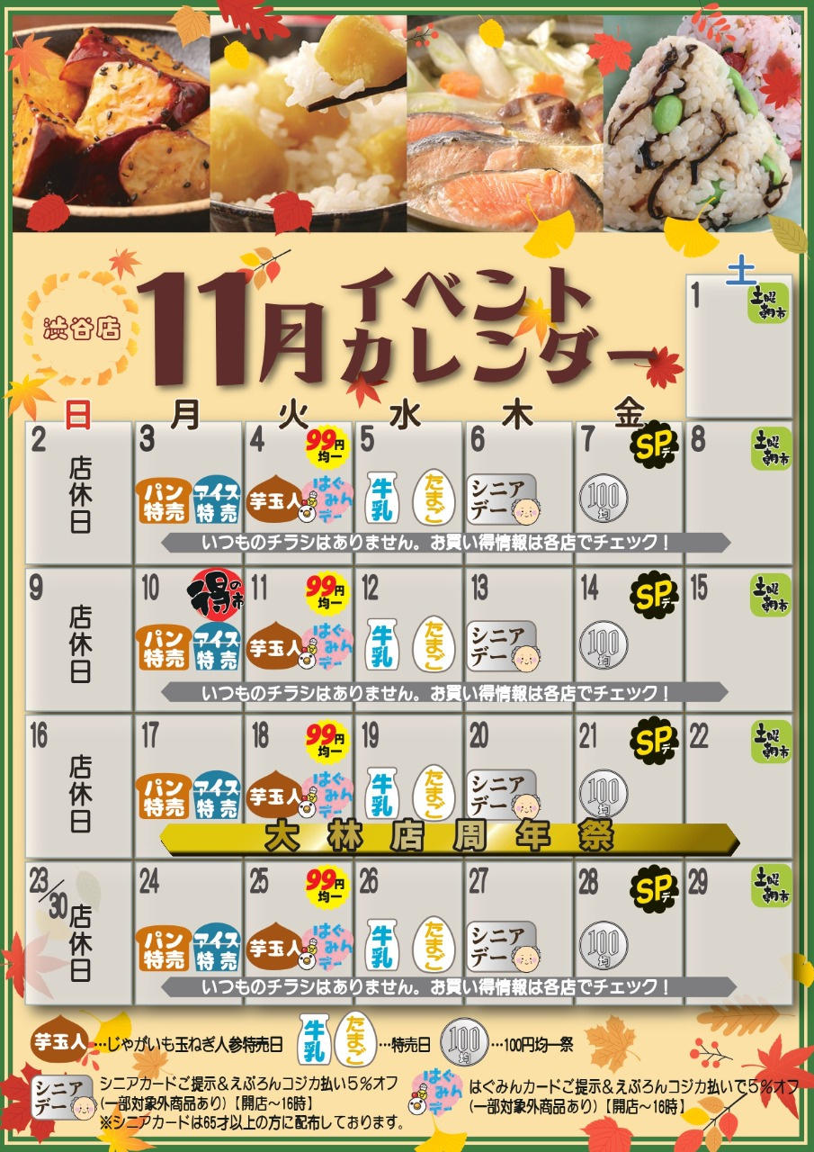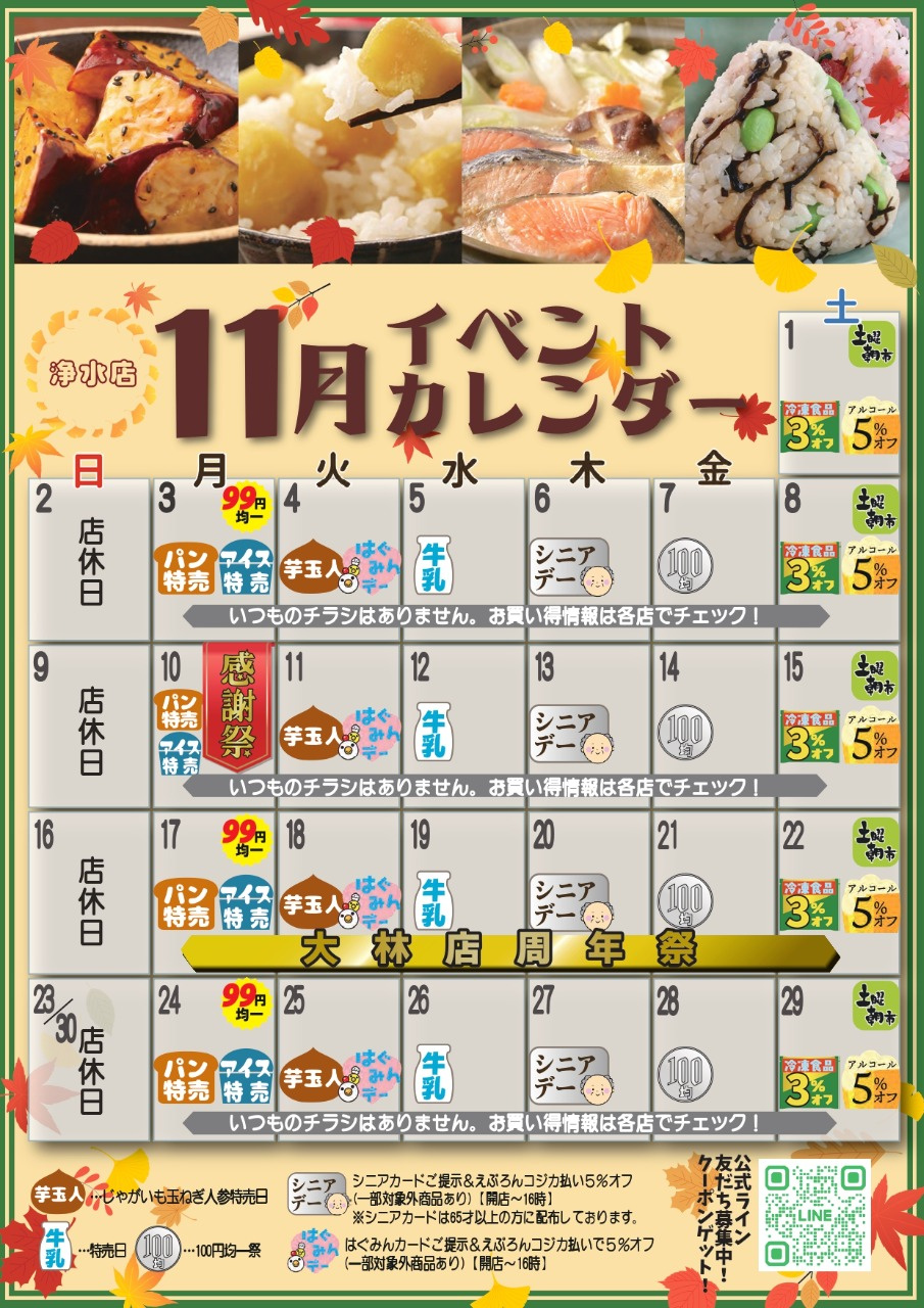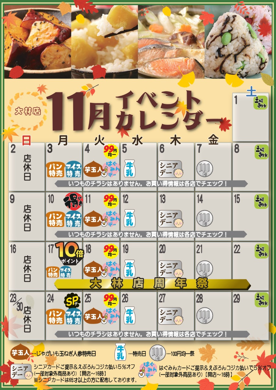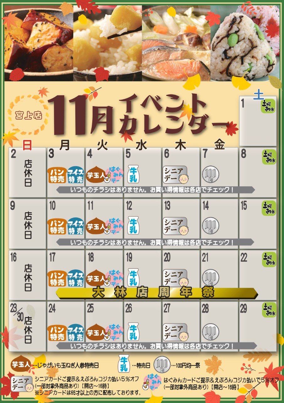 →シニアカード(えぷろん店内発行)のご提示&えぷろんコジカ払いで5%オフ!(一部対象外商品あり・開店~16時まで)