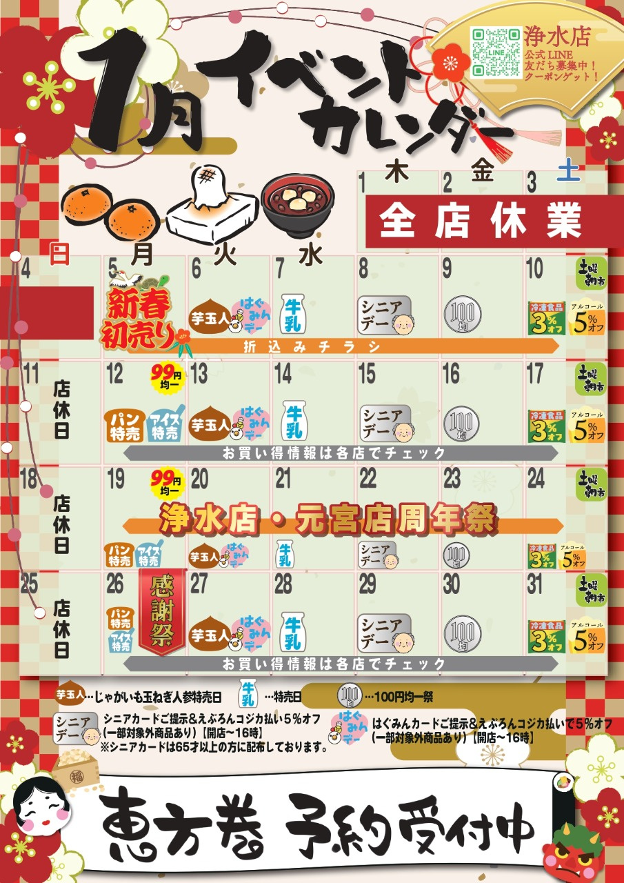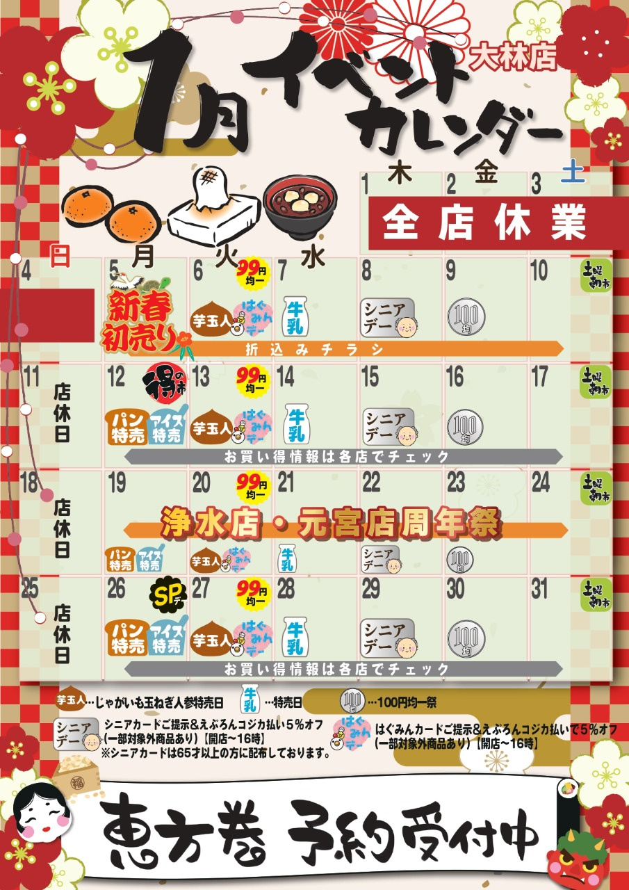 →シニアカード(えぷろん店内発行)のご提示&えぷろんコジカ払いで5%オフ!(一部対象外商品あり・開店~16時まで)