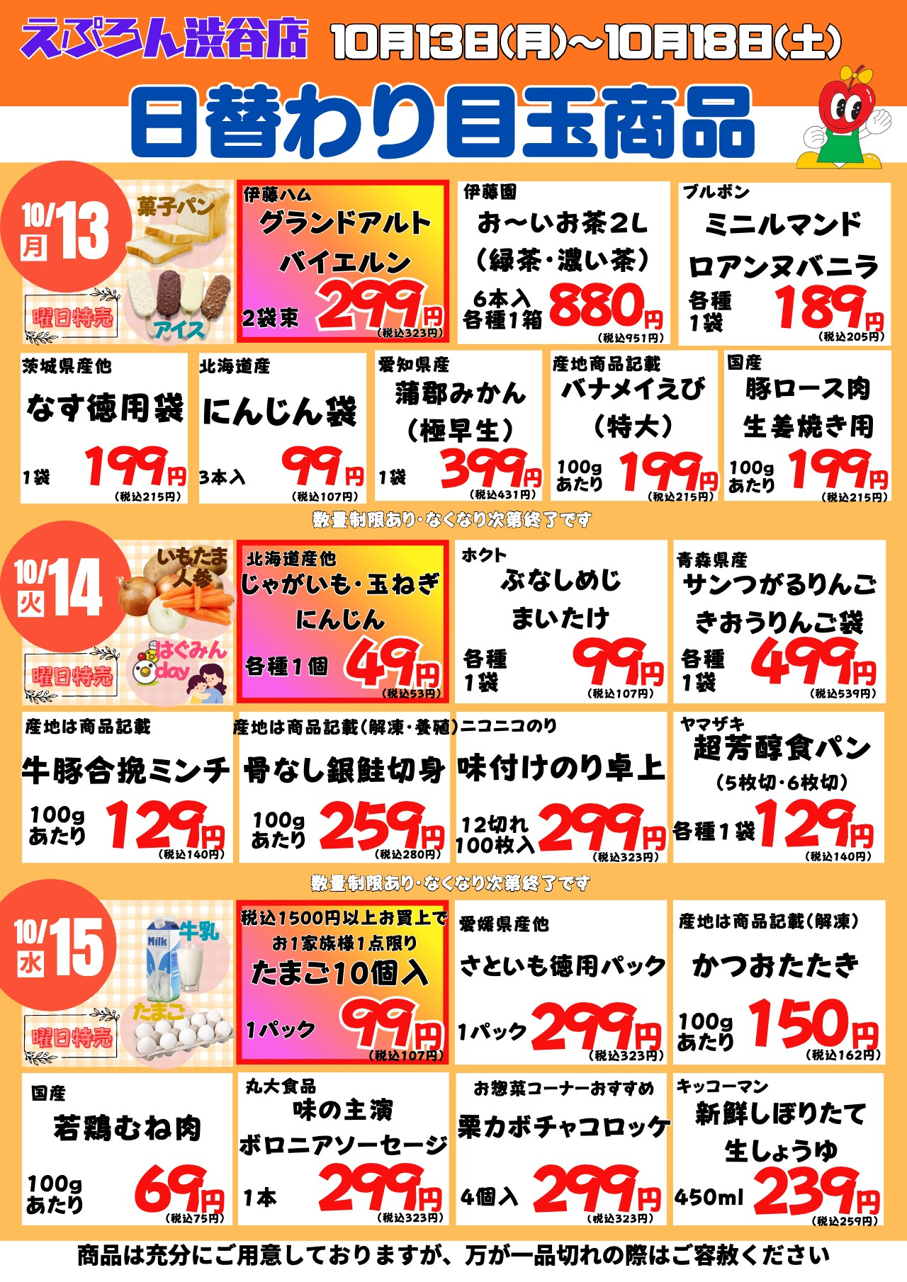 チラシ売出期間 | 2025年10月13日(2025-10-13) 〜 2025年10月18日(2025-10-18) |