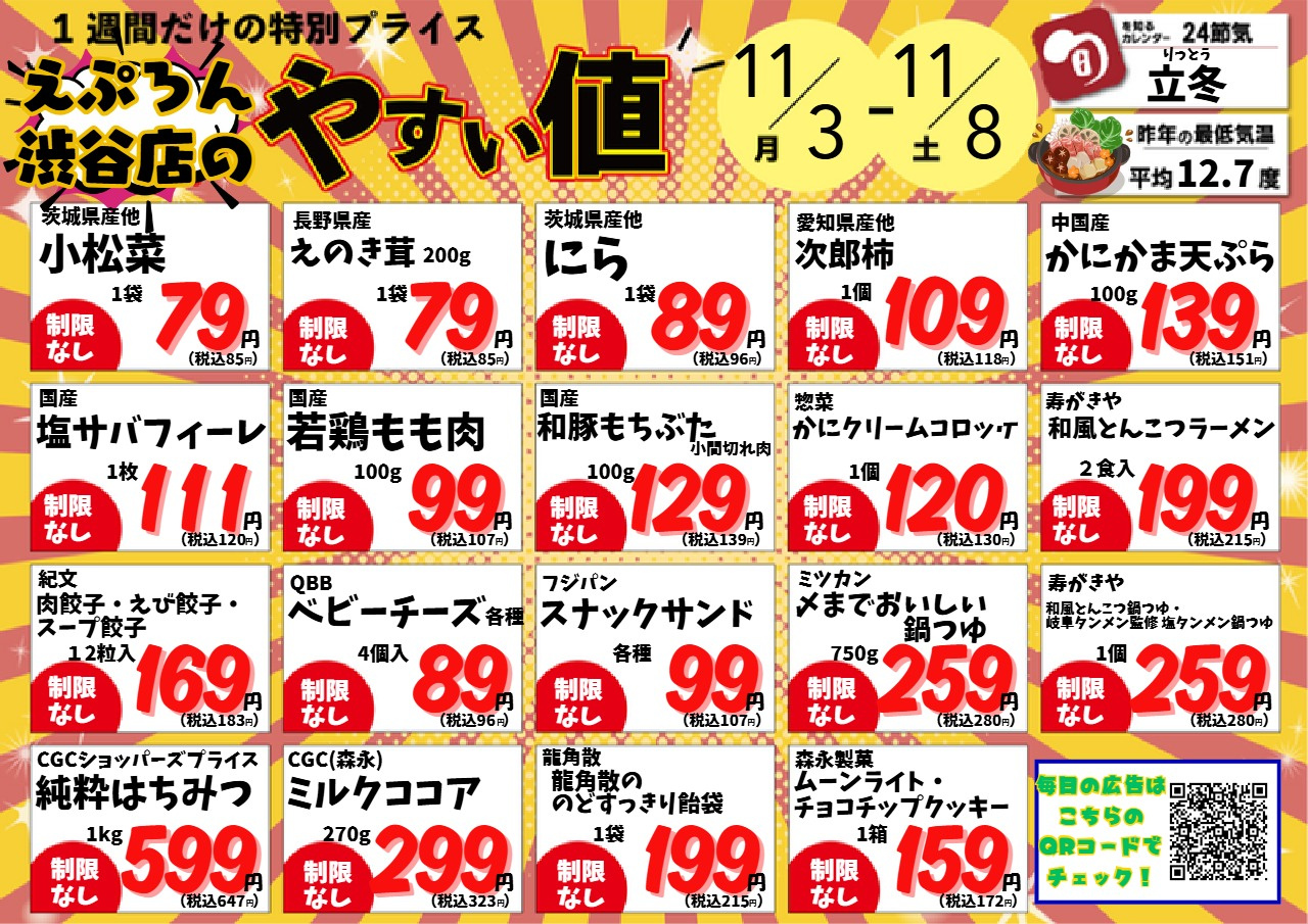 | チラシ売出期間 | 2025年11月3日(2025-11-03) 〜 2025年11月8日(2025-11-08) |