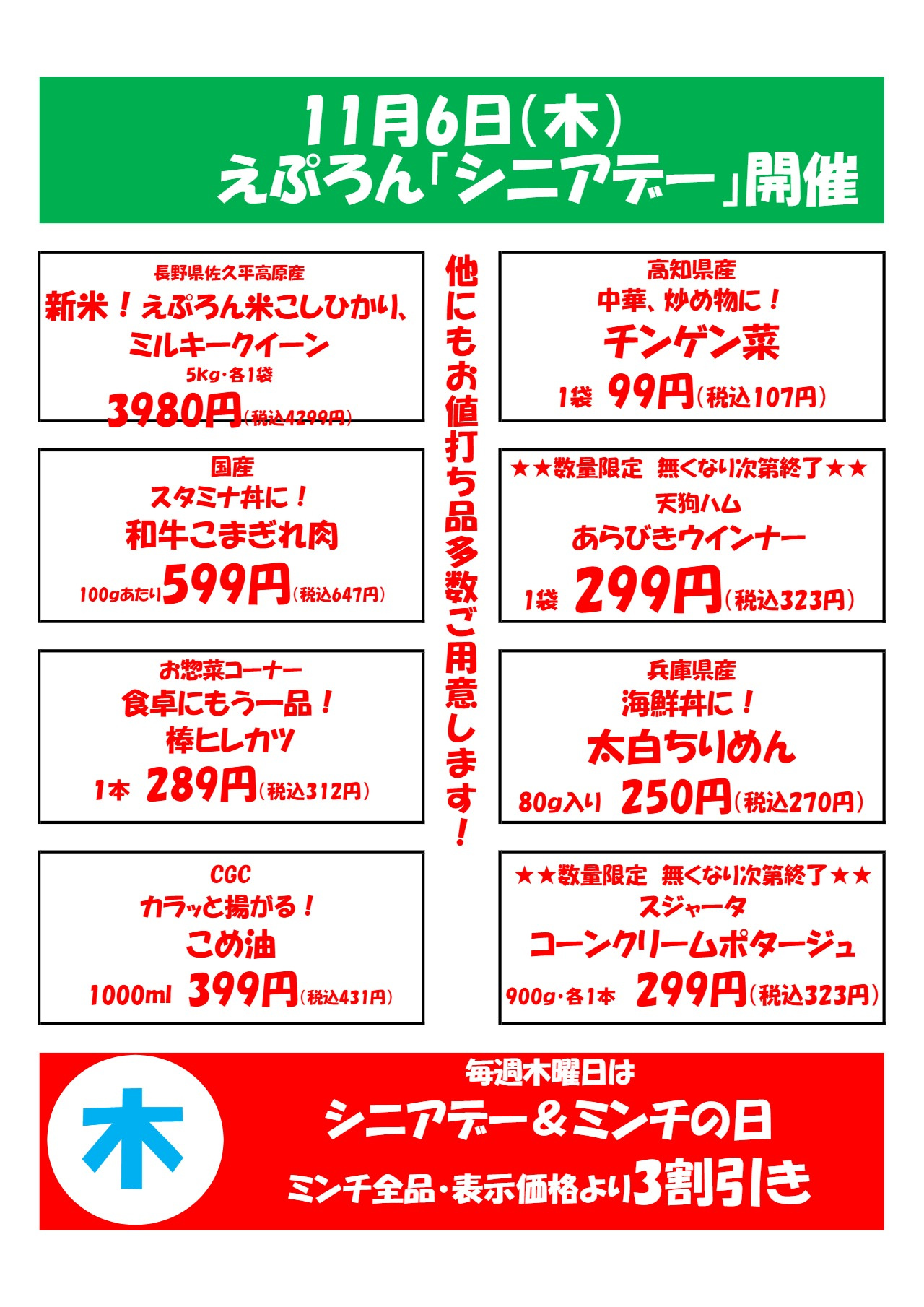 | チラシ売出期間 | 2025年11月6日(2025-11-06) 〜 2025年11月8日(2025-11-08) |