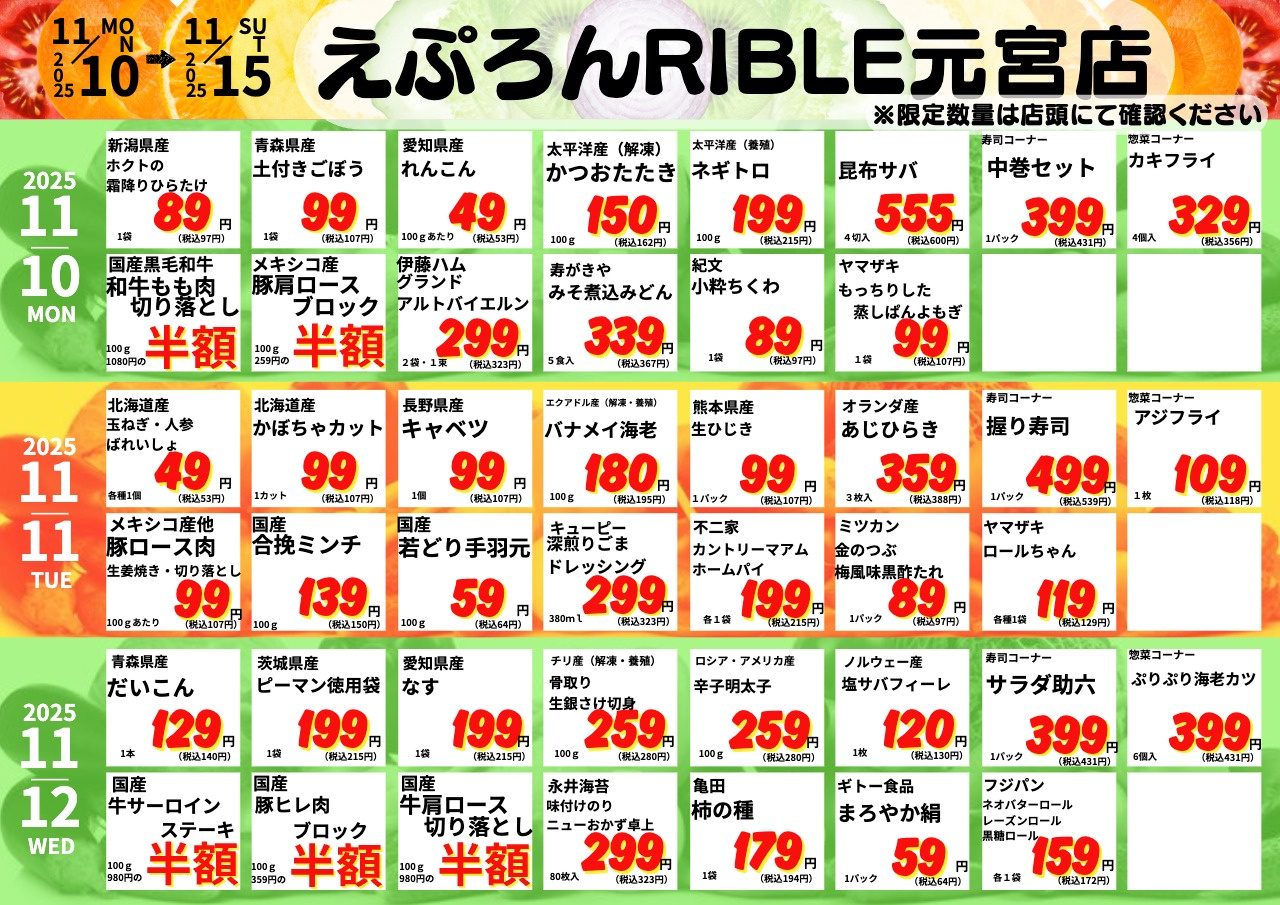| チラシ売出期間 | 2025年11月10日(2025-11-10) 〜 2025年11月15日(2025-11-15) |
