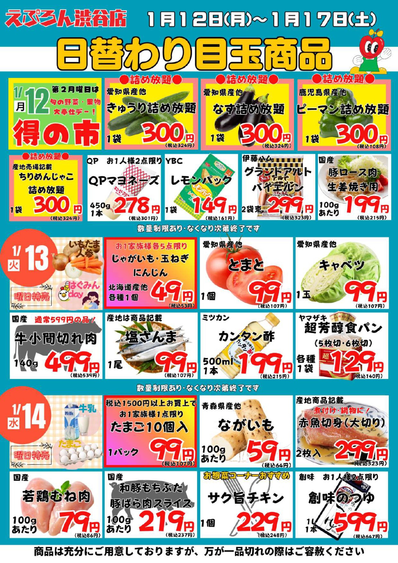 | チラシ売出期間 | 2026年1月12日(2026-01-12) 〜 2026年1月17日(2026-01-17) |