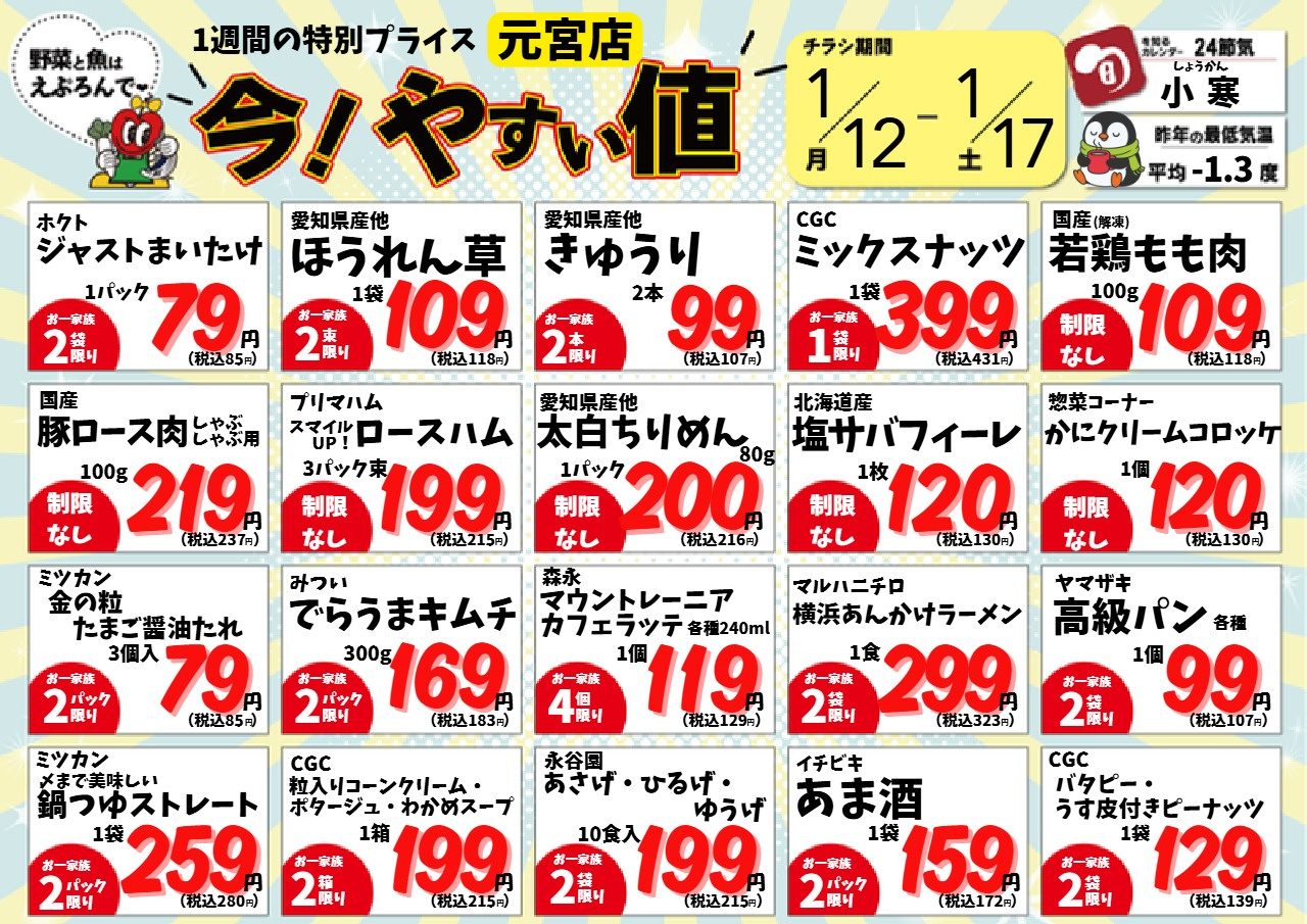 | チラシ売出期間 | 2026年1月12日(2026-01-12) 〜 2026年1月17日(2026-01-17) |