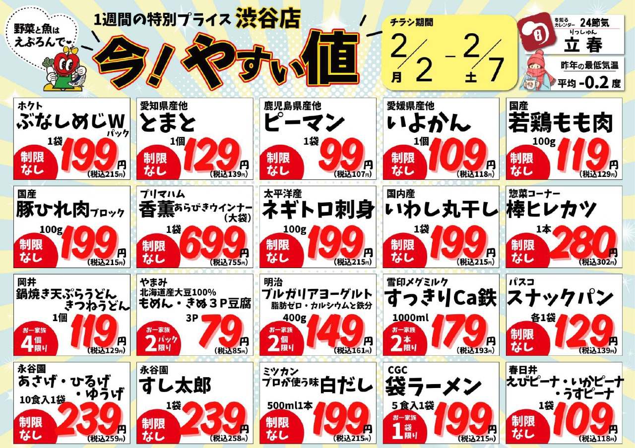 2/2~2/7 渋谷店の今!やすい値