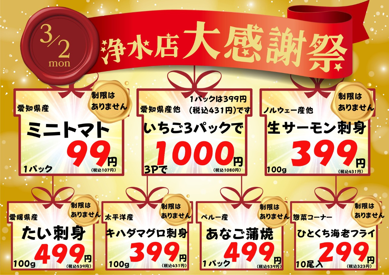 | チラシ売出期間 | 2026年3月2日(2026-03-02) 〜 2026年3月2日(2026-03-02) |