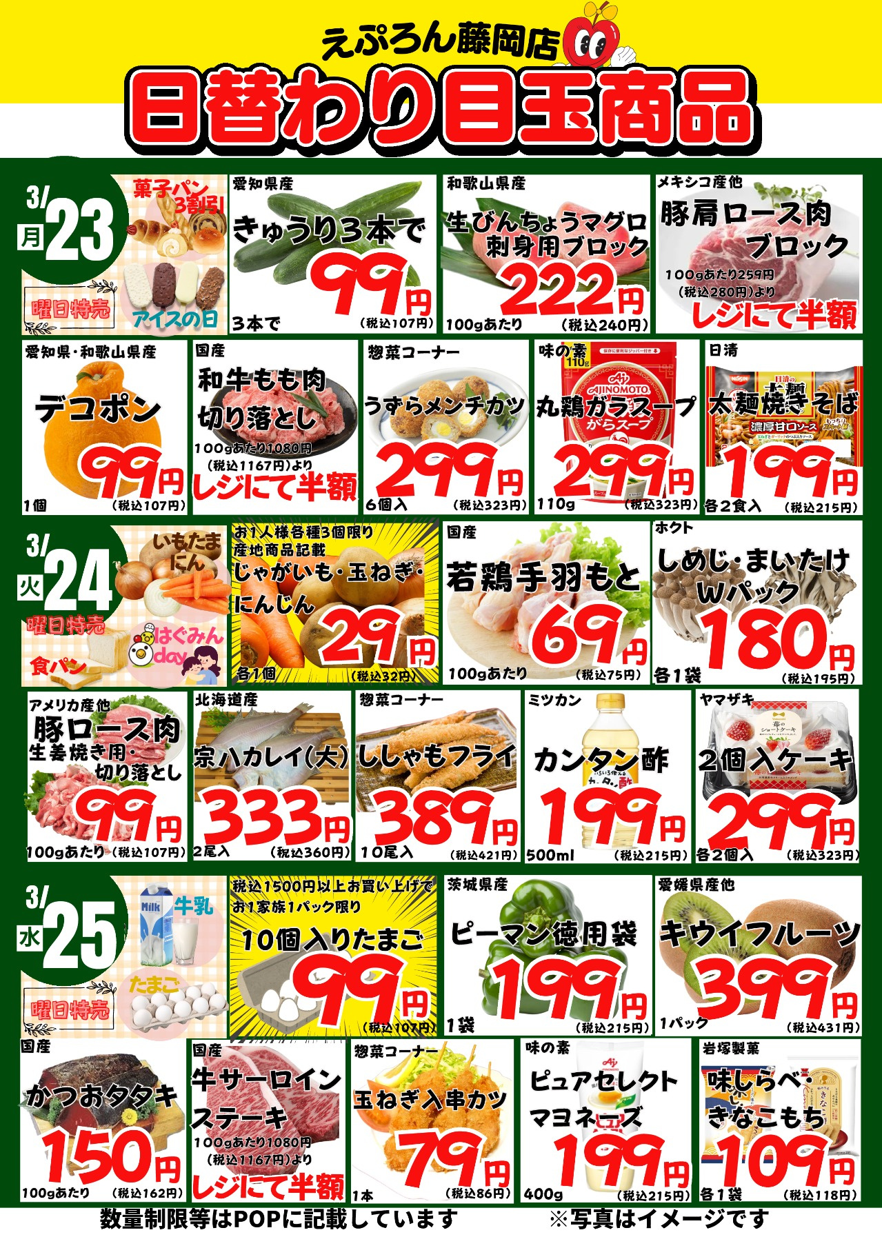3/23~3/28 藤岡店の日替わり