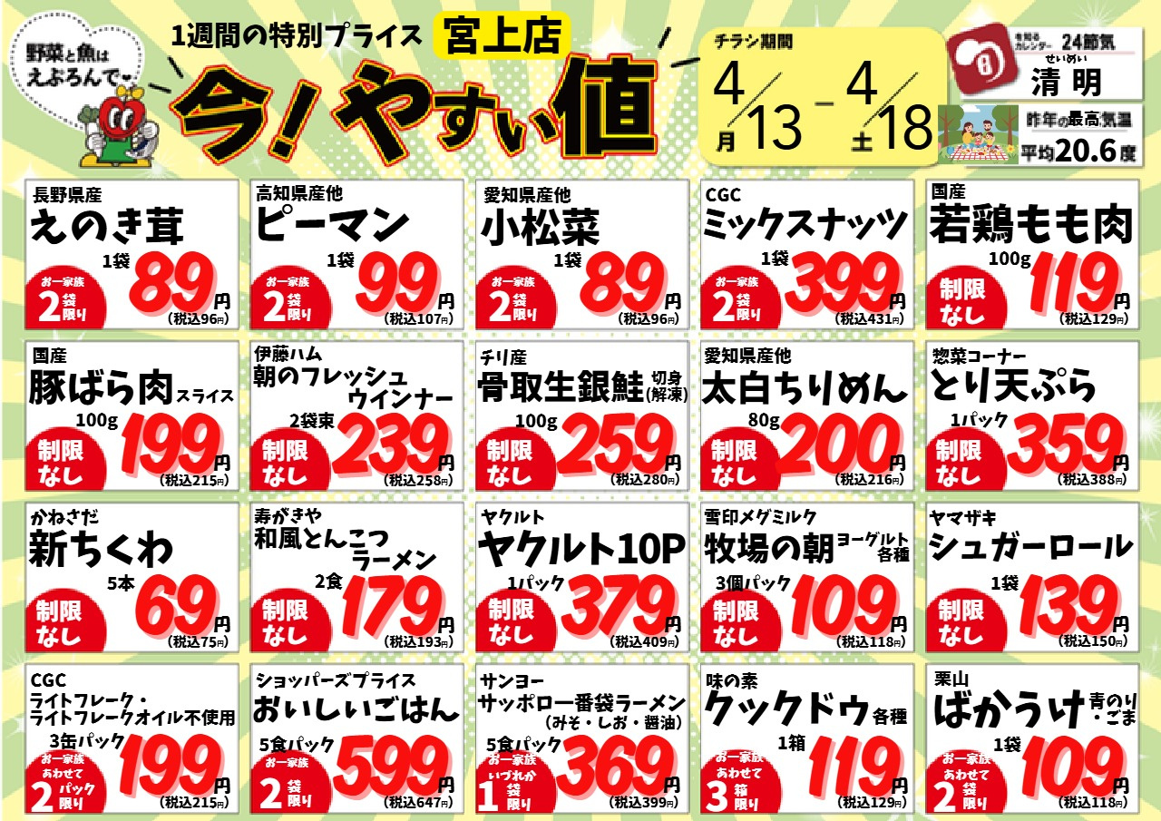 | チラシ売出期間 | 2026年4月13日(2026-04-13) 〜 2026年4月18日(2026-04-18) |