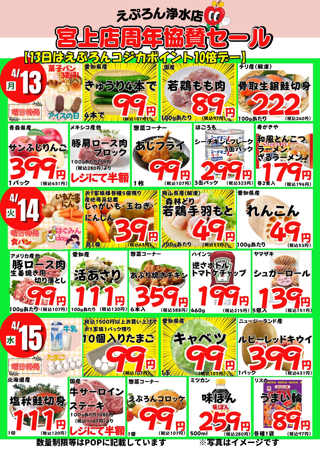 | チラシ売出期間 | 2026年4月13日(2026-04-13) 〜 2026年4月18日(2026-04-18) |