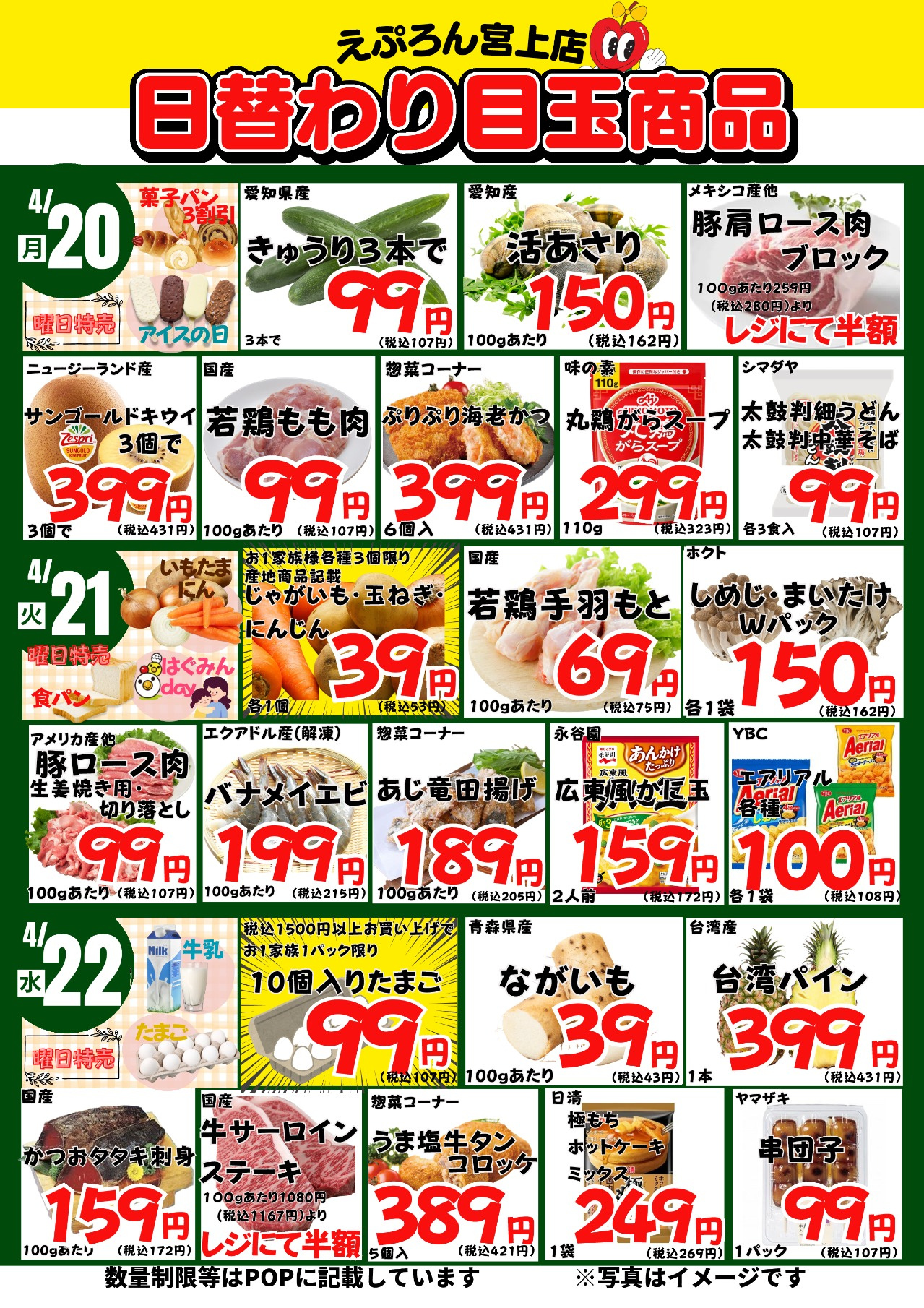 | チラシ売出期間 | 2026年4月20日(2026-04-20) 〜 2026年4月25日(2026-04-25) |