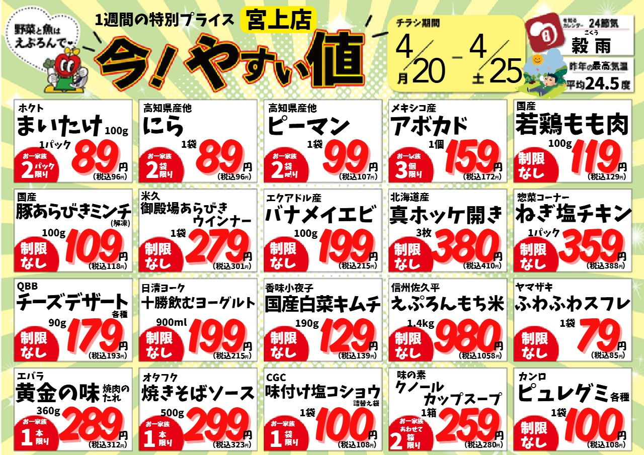 4/20-25 宮上店今!やすい値