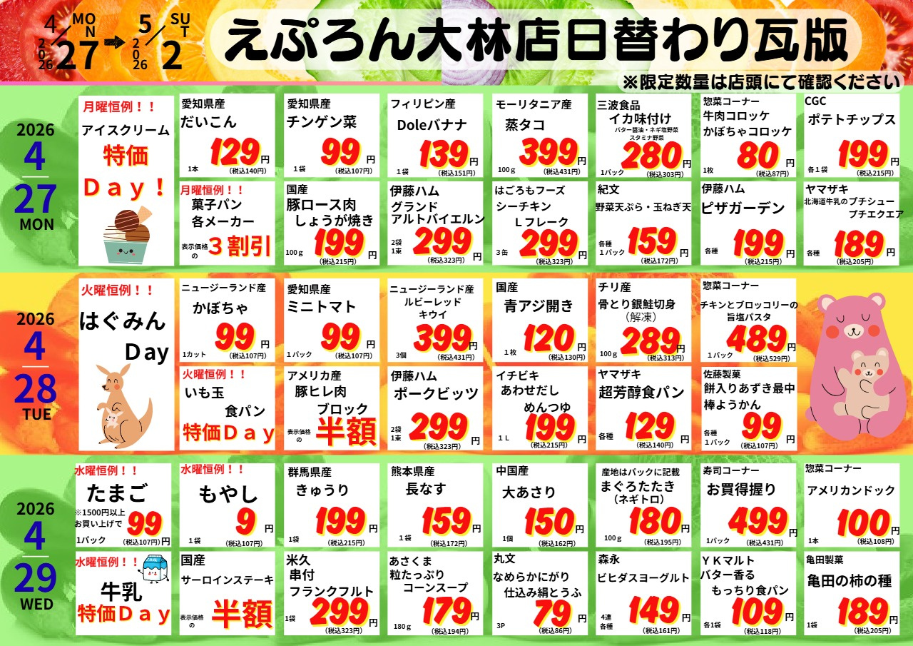 4/27-5/2 大林店日替わり